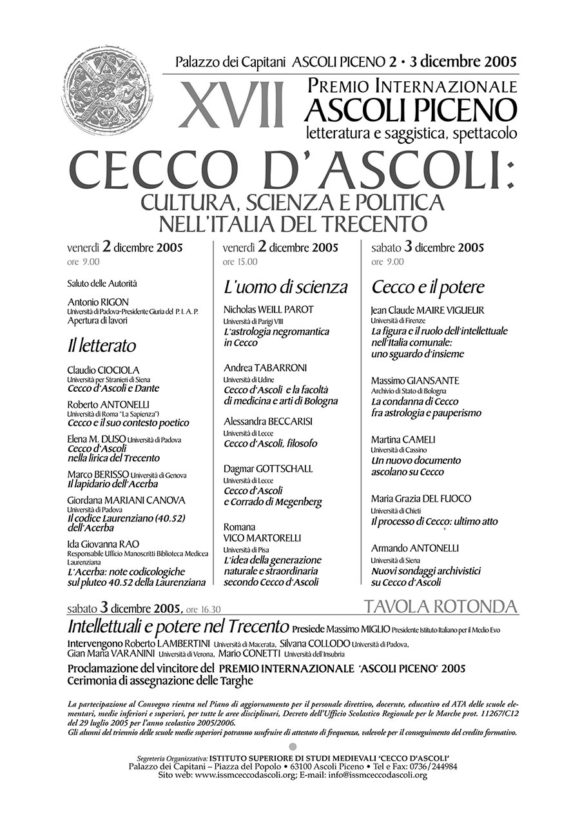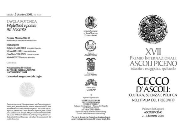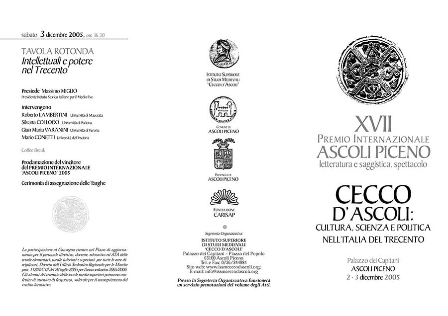 Atti del studio svoltosi in occasione della XVII edizione del Premio internazionale Ascoli Piceno (Ascoli Piceno, Palazzo dei Capitani, 2-3 dicembre 2005)