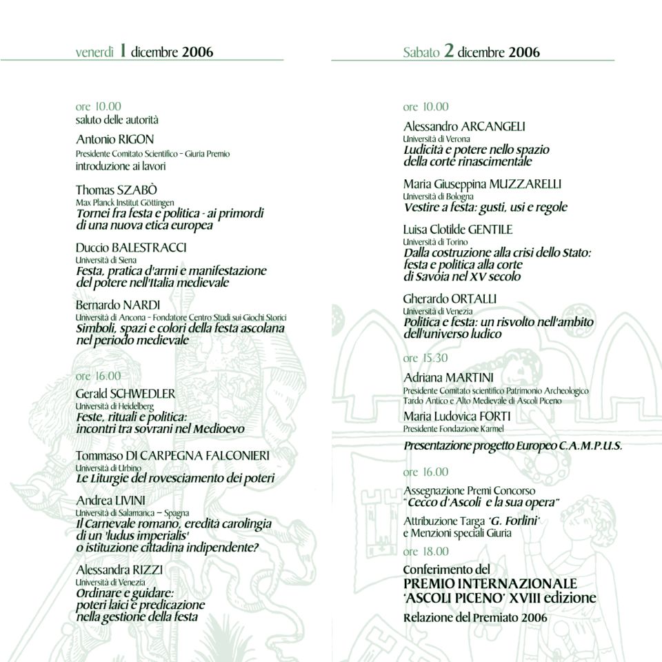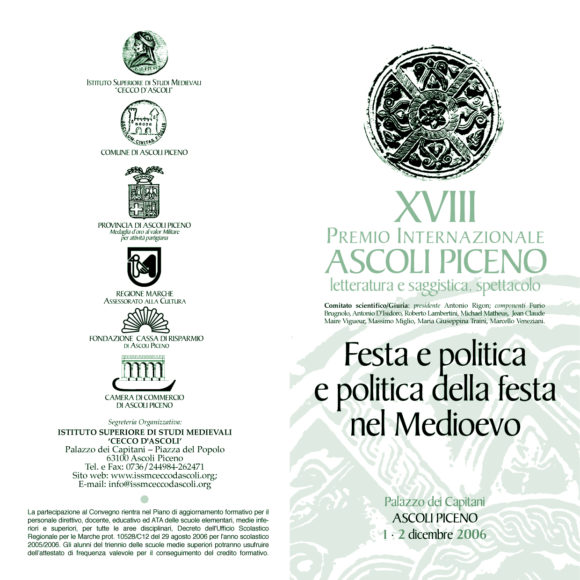 Atti del convegno di studio svoltosi in occasione della XVIII edizione del Premio internazionale Ascoli Piceno (Ascoli Piceno, Palazzo dei Capitani, 1-2 dicembre 2006)