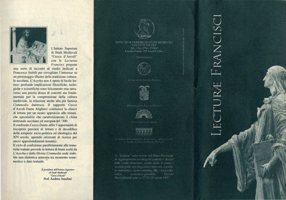 Pubblicazione del Quaderno Lecturae Francisci a cura di A. Anselmi, contenente i contributi proposti nel I anno di corso – 2° volume della Collana “Quaderni dell’ISSM”